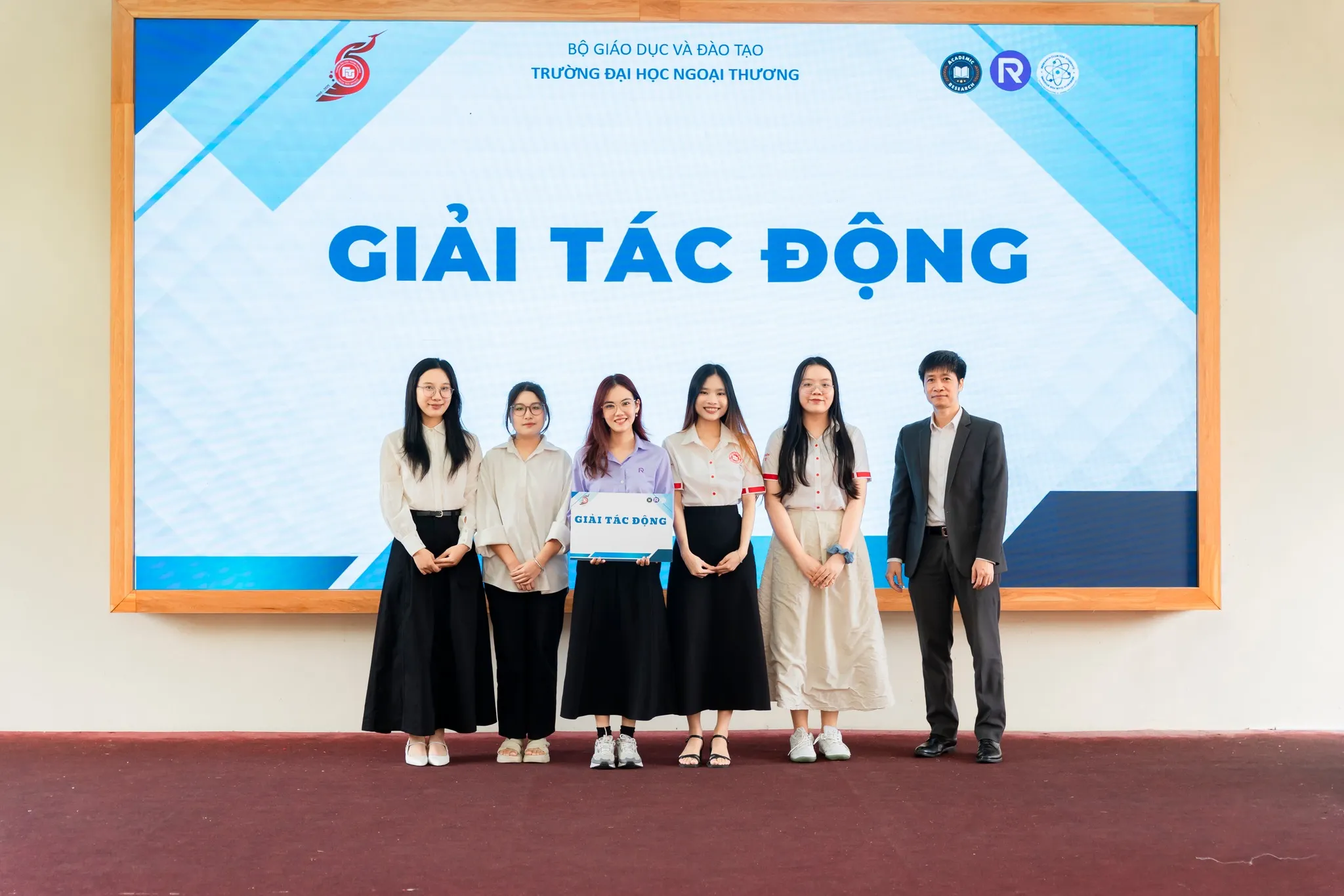 – Sinh viên Đoàn Thị Hương Giang, Lớp Anh 02 – KTQT – K62 và Sinh viên Chế Hà Minh Hiên – Lớp Anh 01 – KTQT – K63 thuộc nhóm 11 với đề án FTU Reconnect đạt giải “Tác động”