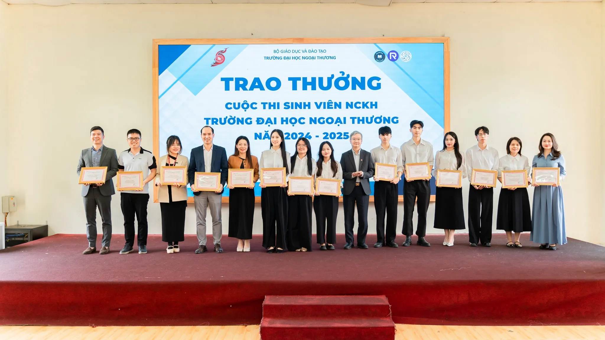 Toàn thể thầy cô cùng các em sinh viên tham dự Hội nghị Sinh viên Nghiên cứu khoa học năm 2024-2025 và Lễ phát động các hoạt động Sinh viên Nghiên cứu khoa học Trường Đại học Ngoại thương năm học 2025-2026