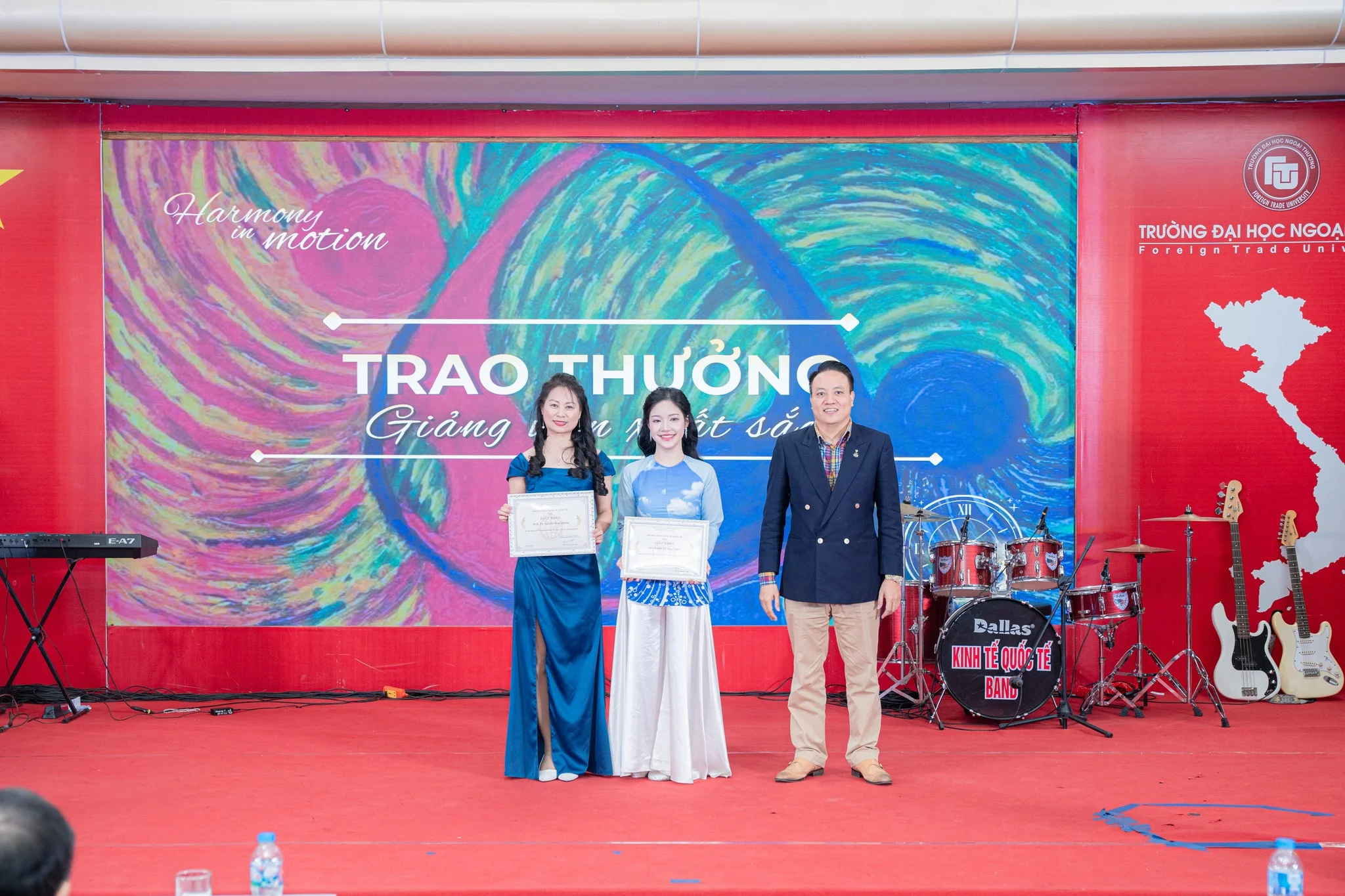 PGS, TS Hoàng Xuân Bình – Trưởng khoa KTQT trao thưởng đến 02 Giảng viên xuất sắc của Khoa KTQT: PGS, TS Nguyễn Bình Dương và ThS, NCS Khuất Vũ Ngọc Linh