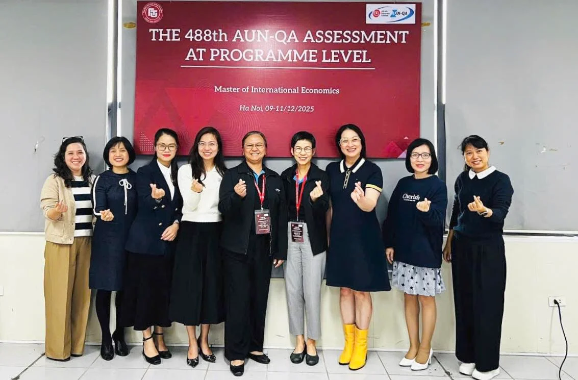 Sáng ngày 09 tháng 12 năm 2025, Đoàn chuyên gia AUN-QA đã làm việc với Khoa Kinh tế Quốc tế – đơn vị phụ trách chương trình đào tạo Thạc sĩ định hướng ứng dụng “Kinh tế quốc tế”